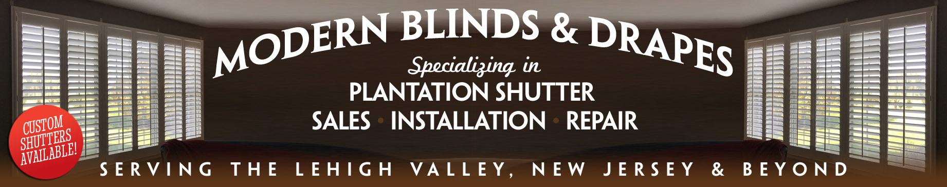 Modern Blinds and Drapes is the premier supplier and installer of plantation shutters. Located at 284 Nazareth Drive, in Nazareth, Pennsylvania, we offer a wide variety of beautiful wood and faux-wood shutters, as well as custom drapes and blinds. We service mainly those in the tri-state area including the Lehigh Valley, Pennsylvania as well as New Jersey and New York.